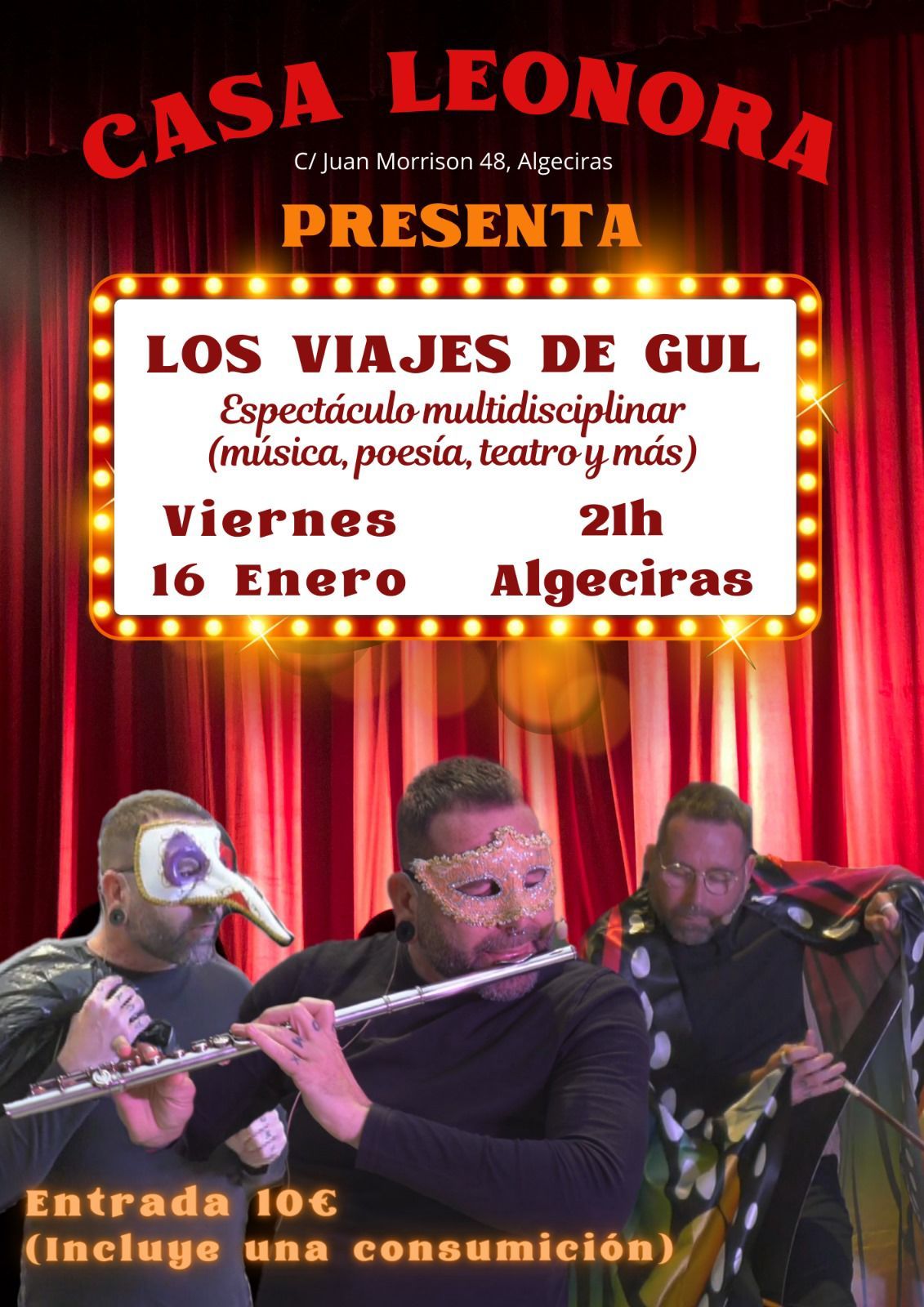 Espectáculo original y multidisciplinar en clave poética, en el que el autor, acompaña al autor  su flauta traversa y su serrucho musical.