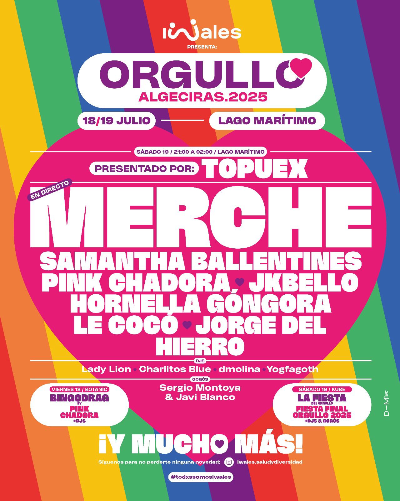 Los artistas que actuarán el sábado 19 de julio de 21:00 a 2:00 Merche, Samantha Ballentines, Pink Chadora, Hornella Góngora, Le Cocó, J Kbello y Jorge del Hierro…